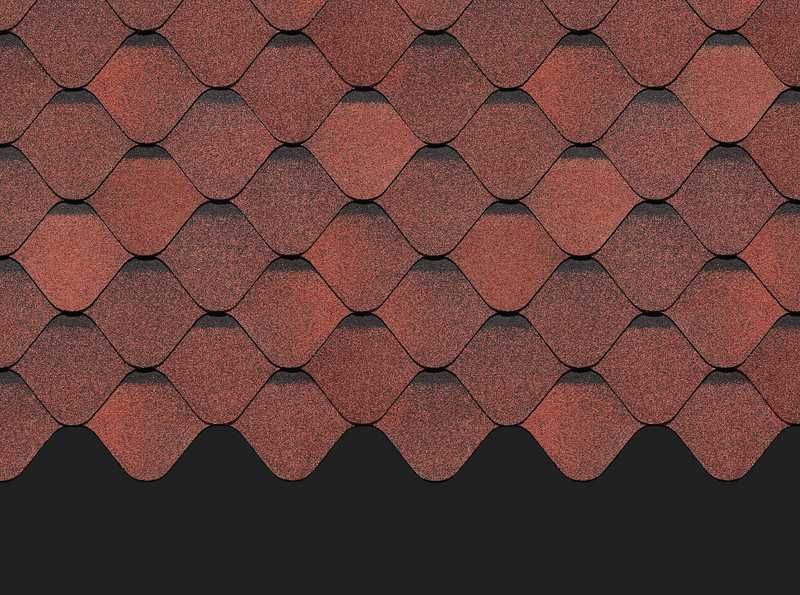 Вкусный насыщенный цвет, оригинальная овальная форма лепестков гонтов, объемный эффект создают оригинальный яркий дизайн. Черепица не останется незамеченной. Кровля станет оригинальным дополнением к фасадам под камень и светлую кирпичную кладку.