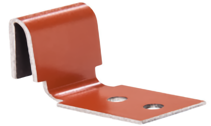 Кляммера позволяют на монтаж желоба к кровельному пирогу без повреждения желоба ендовы (следует избегать проколов ендовы!). Доступны кляммера к желобу с поперечным и продольным тиснением из алюминия (цвета согласно таблице RAL) или из меди (доступные на заказ, присутствует минимальный объем заказа и срок реализации до 10 дней).