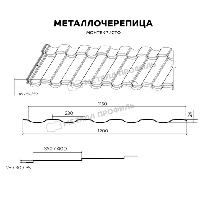Стальная черепица МОНТЕКРИСТО подходит для применения в любых видах строительства или климатических условиях. Данный профиль эстетично выглядит на скатах малой и большой площади, подчеркивая их оригинальность. Параметры длины и высоты ступеней стальной черепицы ― 350/400 мм и 25/30/35 мм, соответственно. Рассматриваемый профиль отличается элегантными плавными волнами и умеренным рельефом, что акцентирует сходство с керамикой. МОНТЕКРИСТО ― аристократичное украшение вашей кровли!