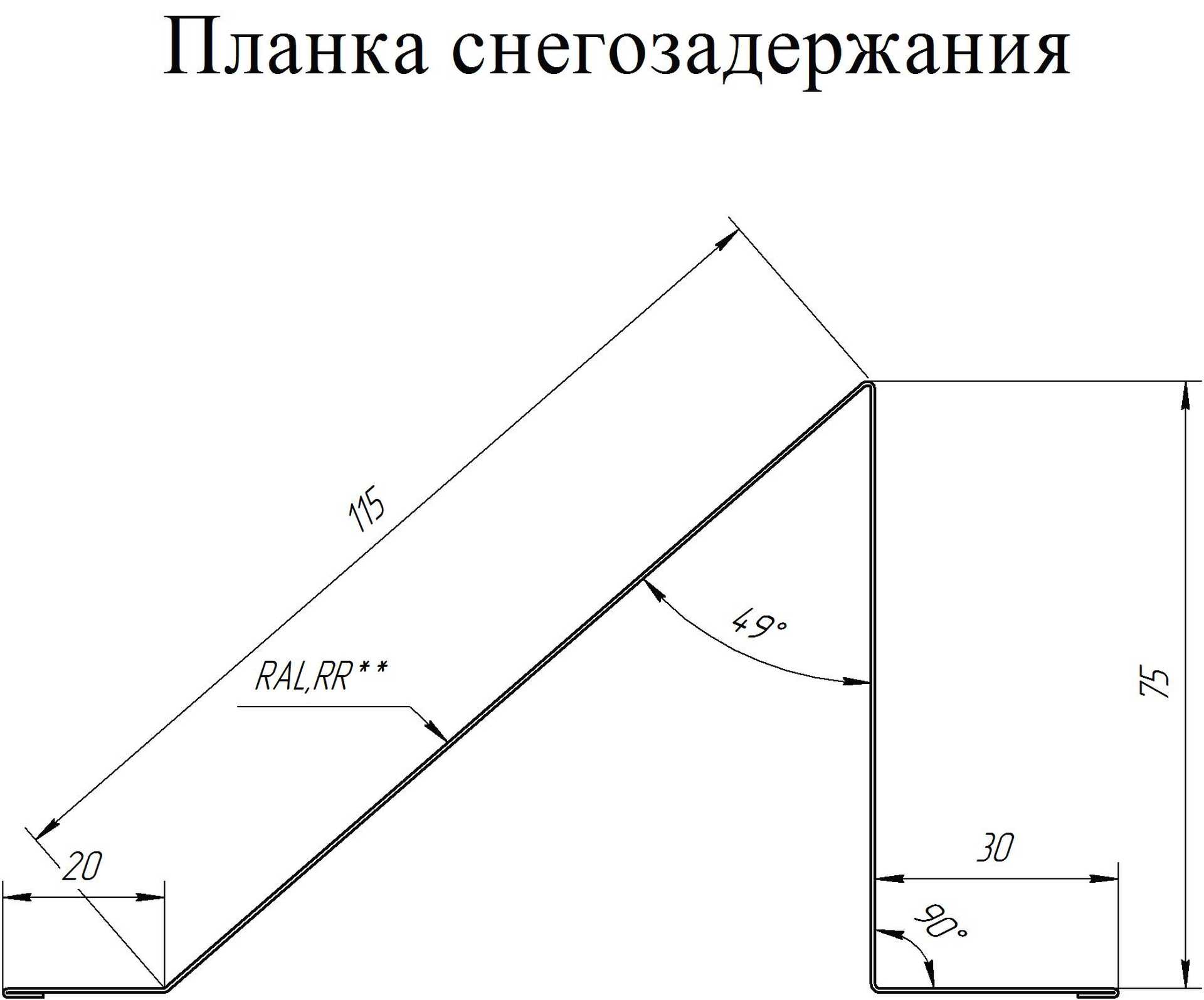 Планка снегозадержания 0,5 Drap RAL 9005 черный